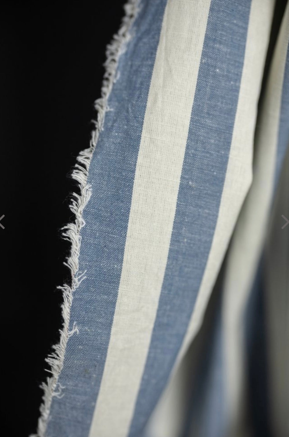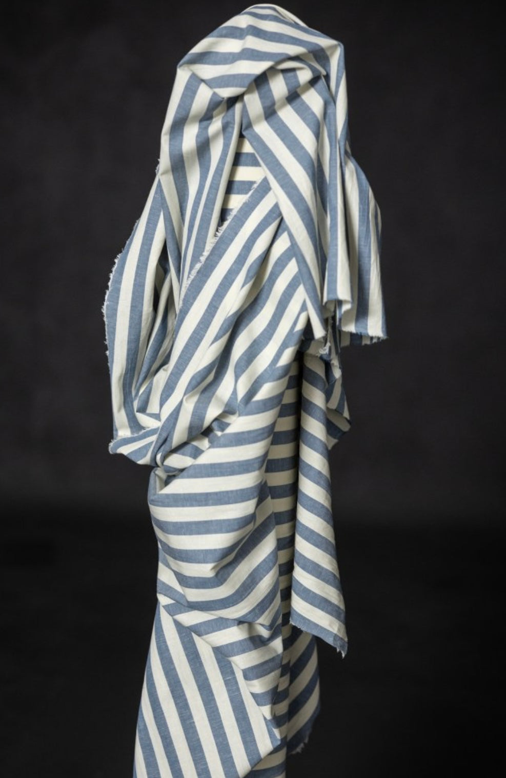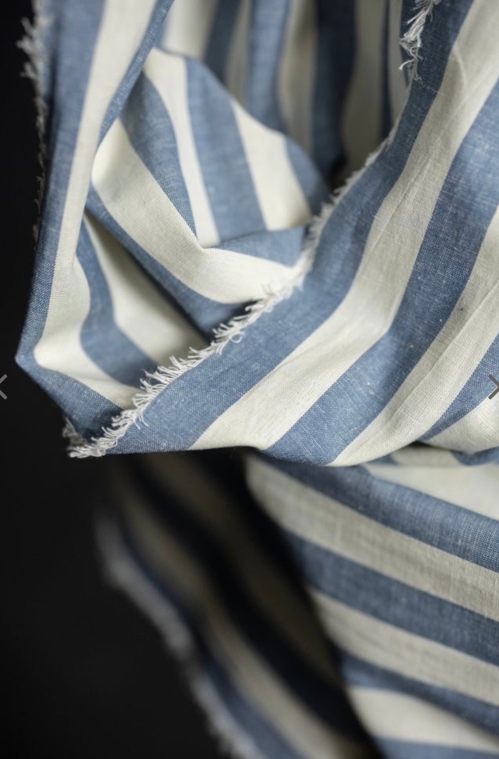 A fresh wide stripe in mid blue and white by the iconic Merchant & Mills.
