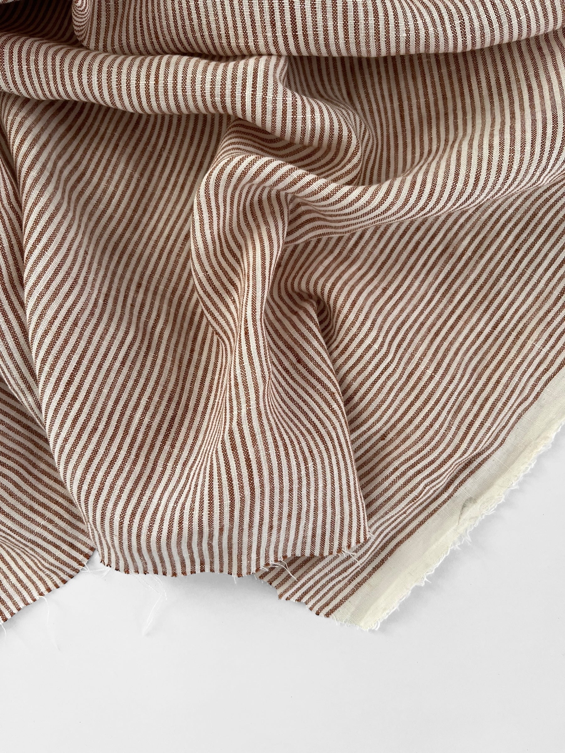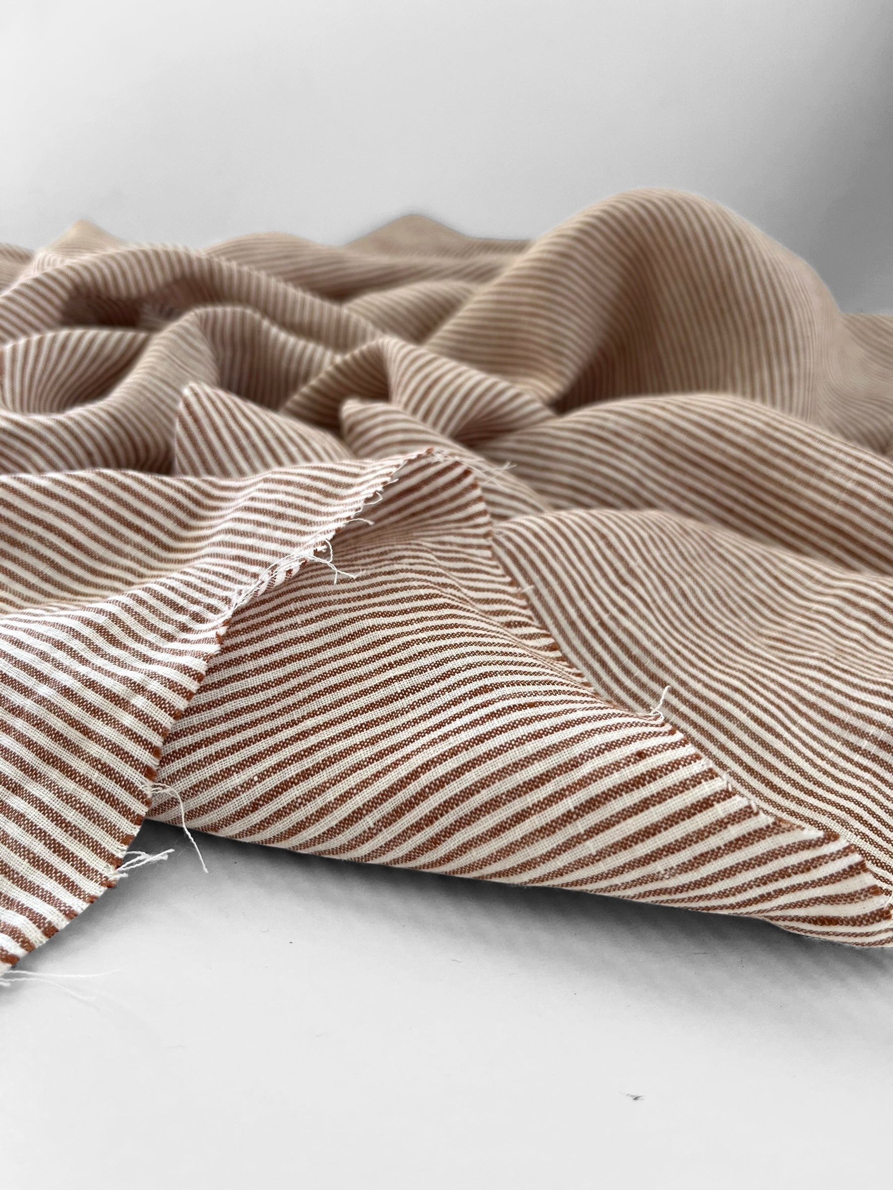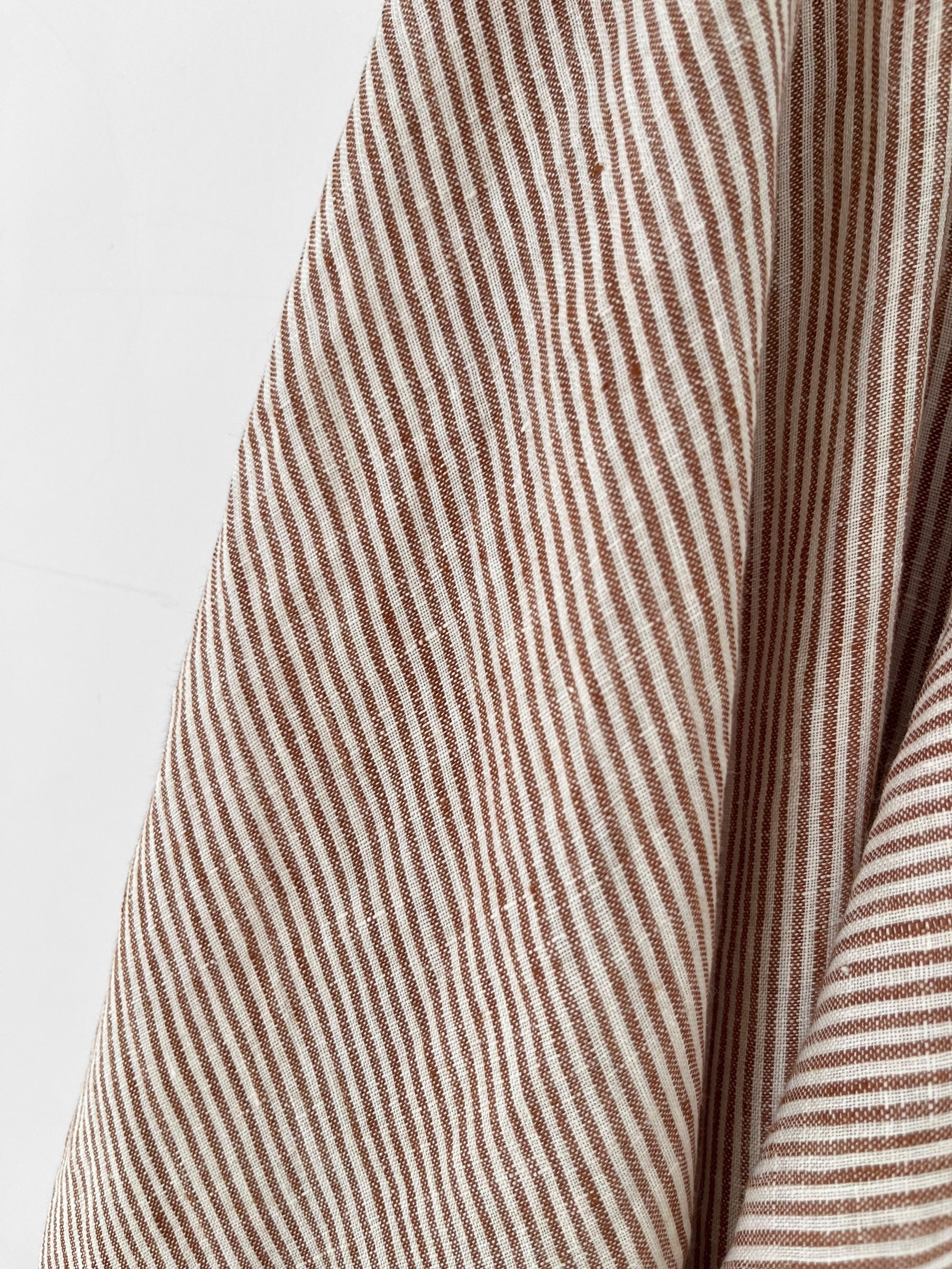 Pure yarn dyed linen sandwashed at the mill for softness. Colours include cinnamon brown and white.