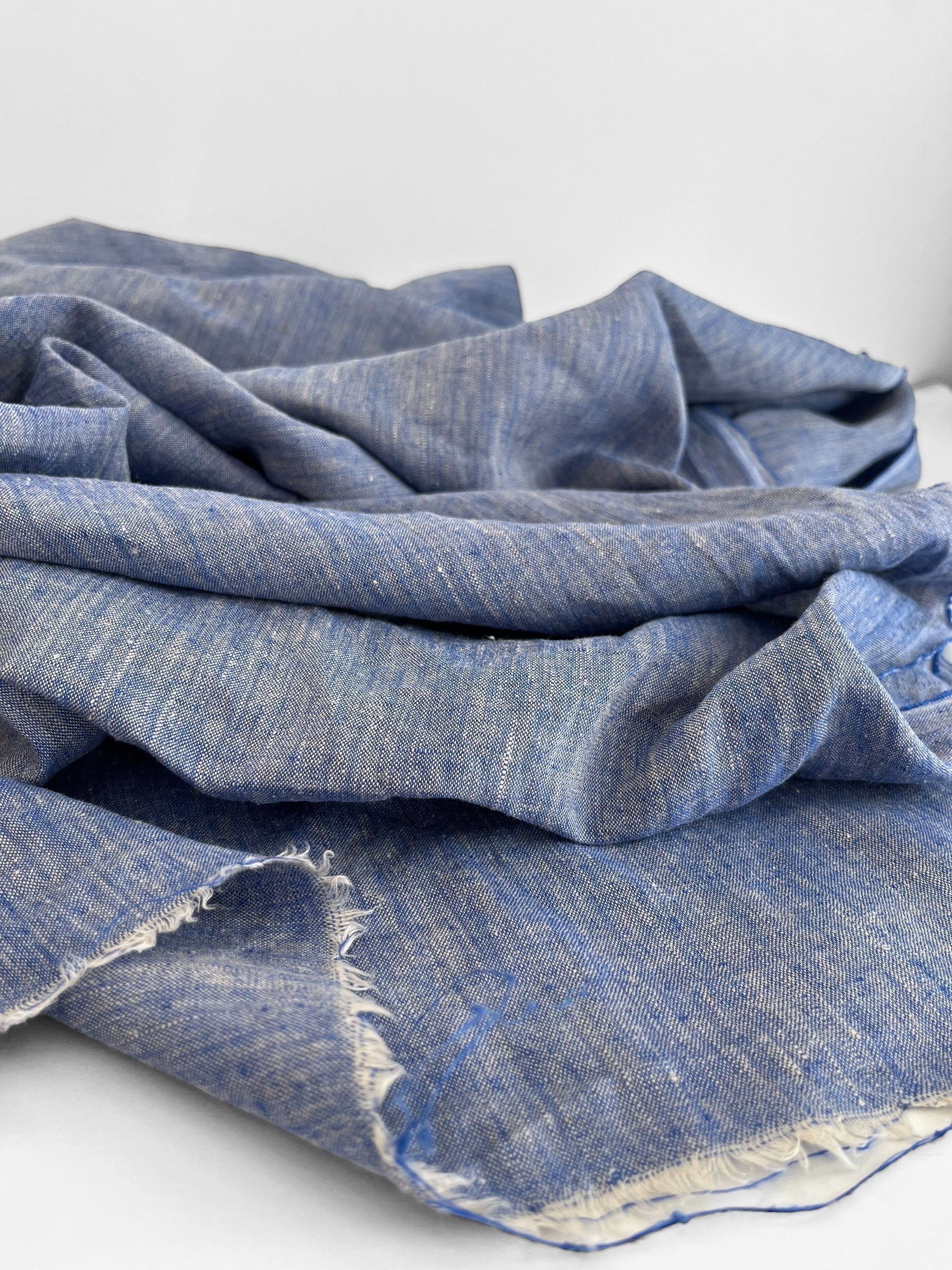 Premium quality linen/hemp blend woven out of two coloured yarn creating a unique melange look. Colours include cobalt blue and natural/off white.