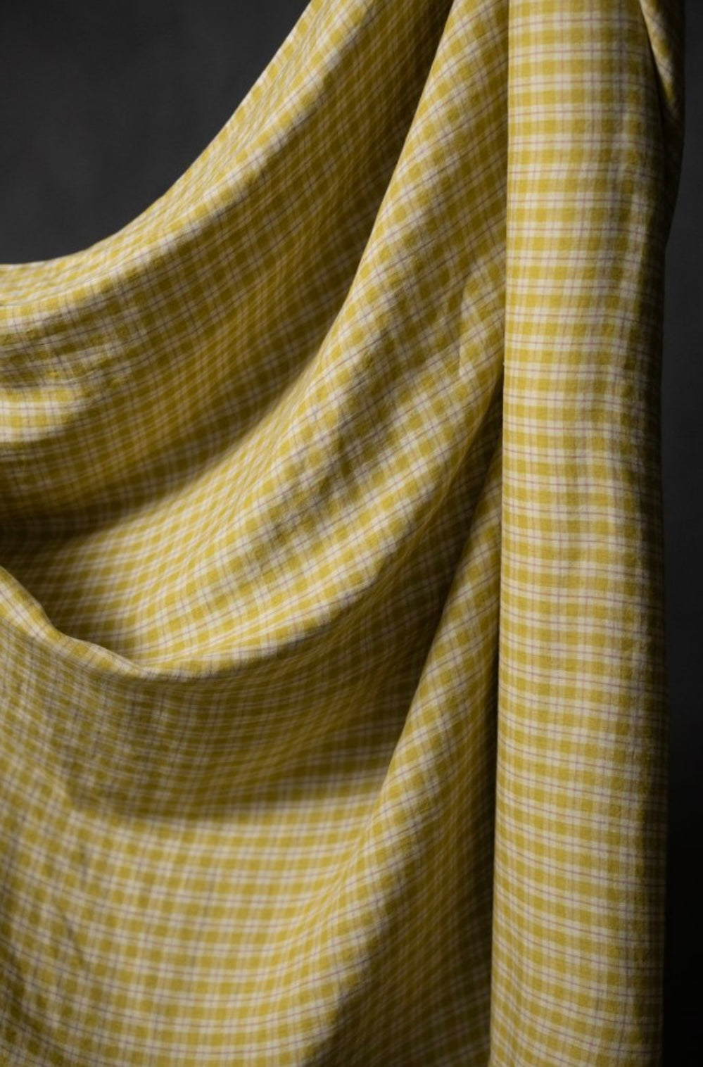 A cutesy linen check in pale yellow and daffodil yellow with a hint of dusty pink.