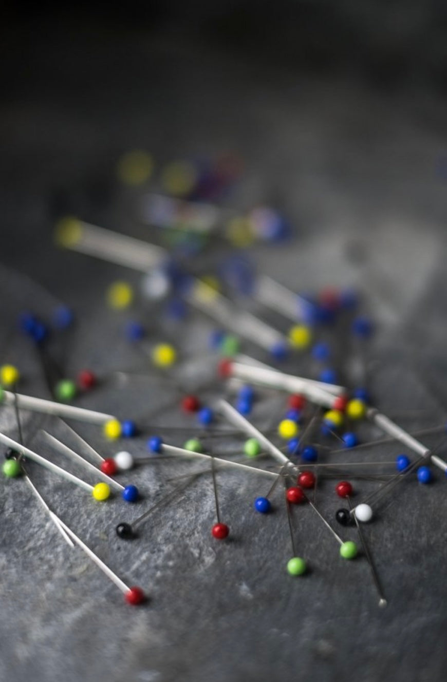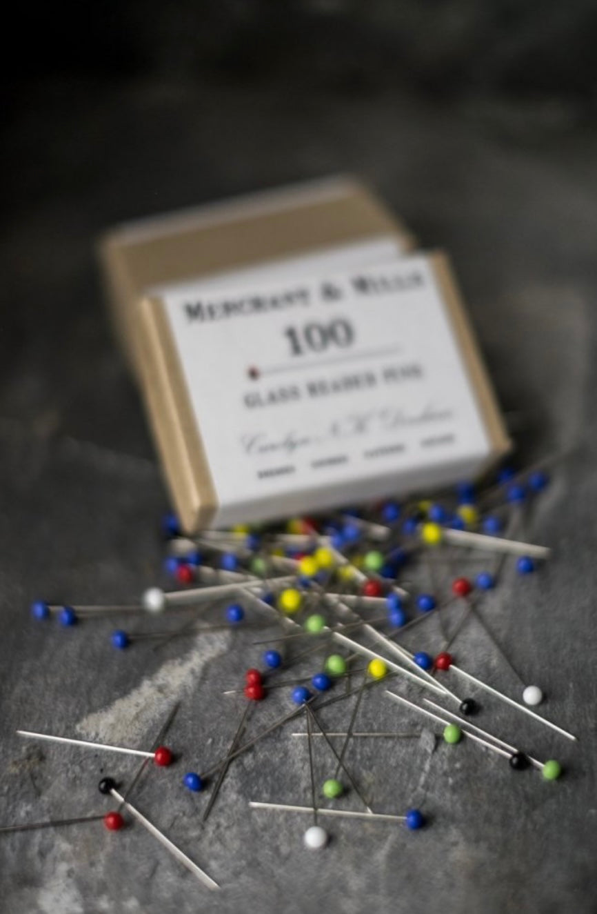 100 (approx) glass headed pins in a multitude of colours to suit your every mood.