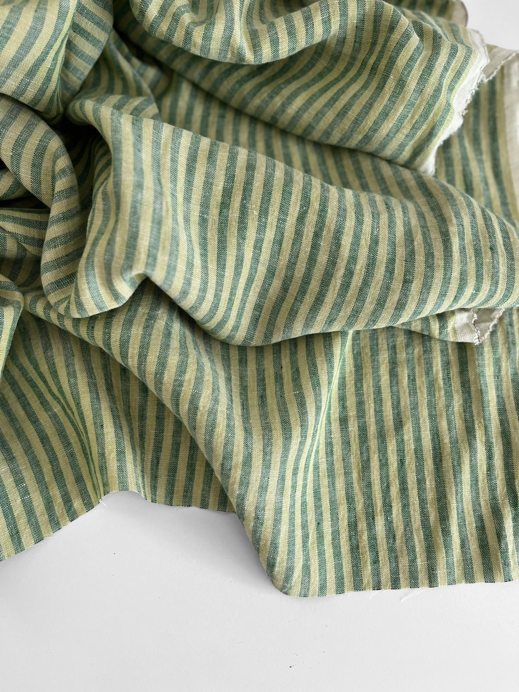 Pure yarn dyed linen, stonewashed at the mill giving it softness and a relaxed worn-in look.
