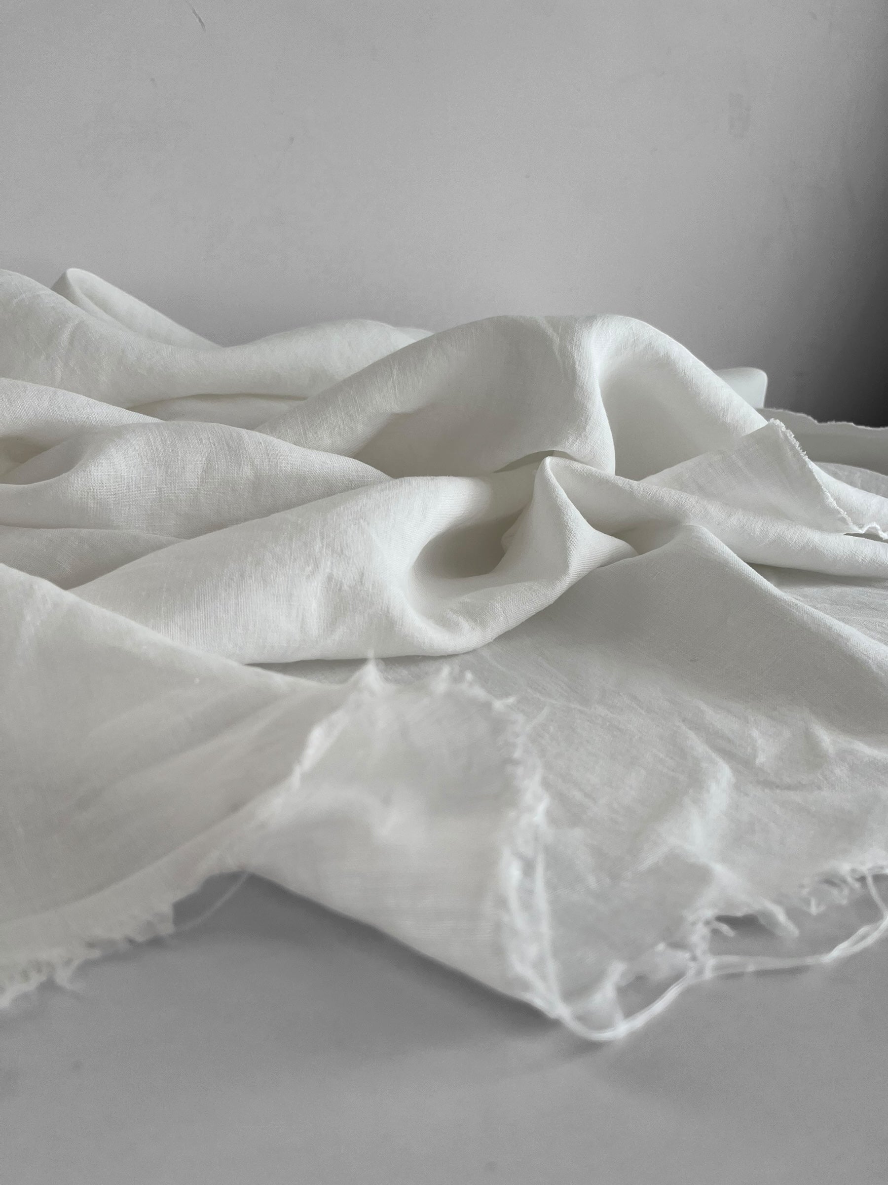 Wash at 30 degrees with a mild bleach-free detergent. Do not tumble dry. Shake out and dry flat. Both linen and hemp will always seize up after washing but as soon as you start to use/wear it the fibres relax again.