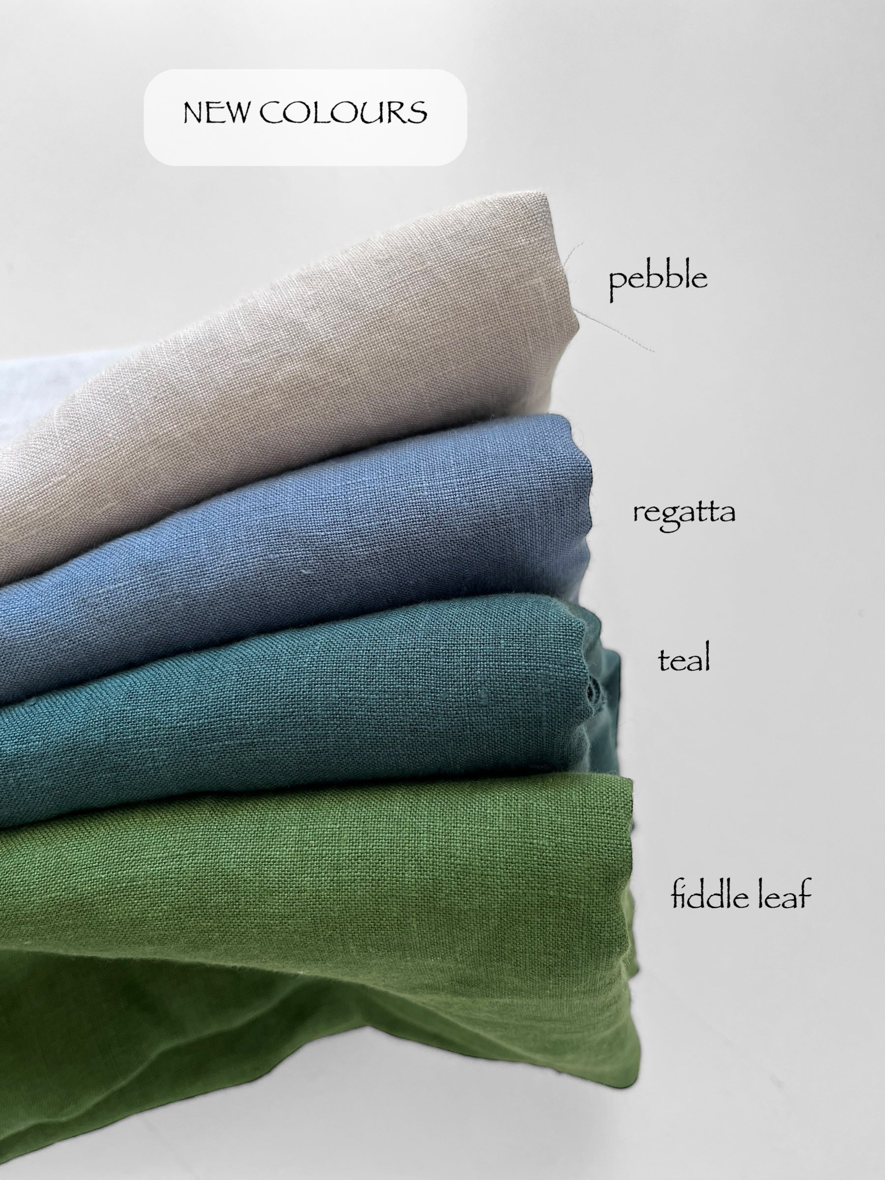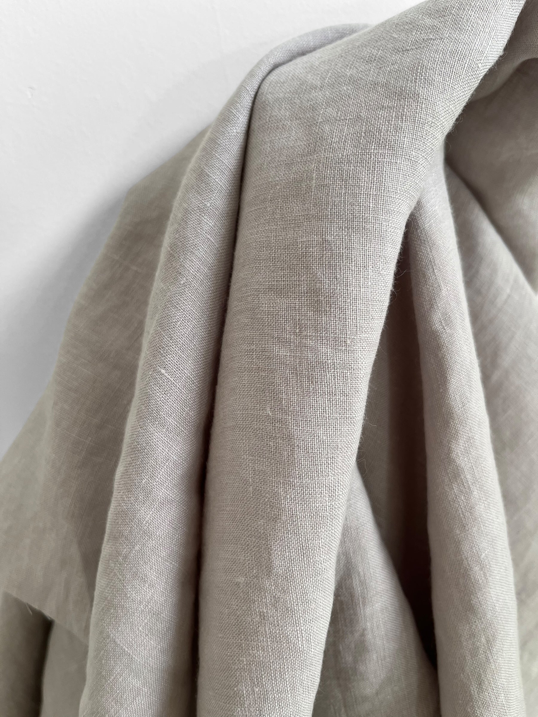Pure European flax linen, stonewashed at the mill giving it softness and a relaxed texture for effortless elegance. Pebble is a light grey colour with warm undertones.