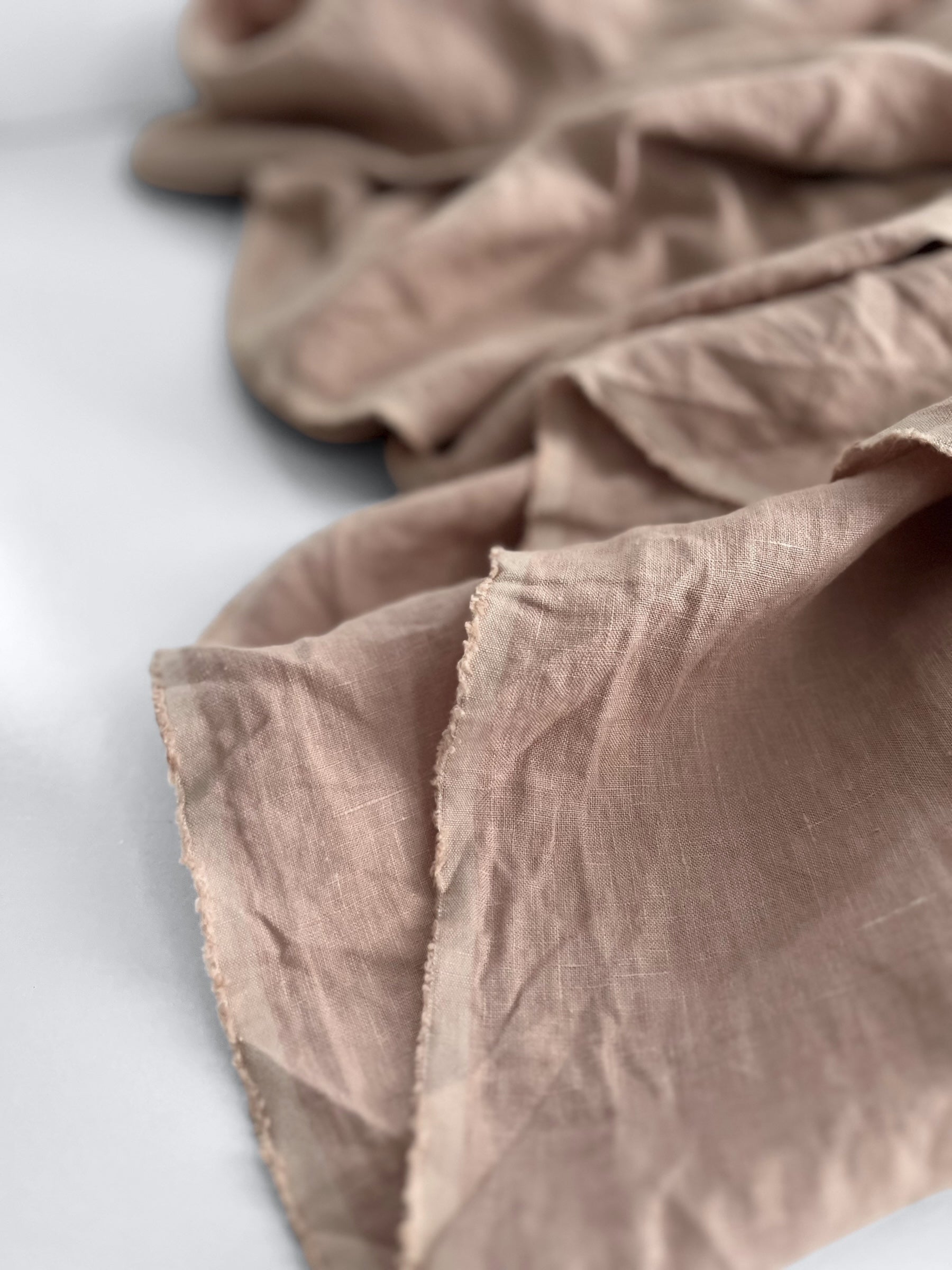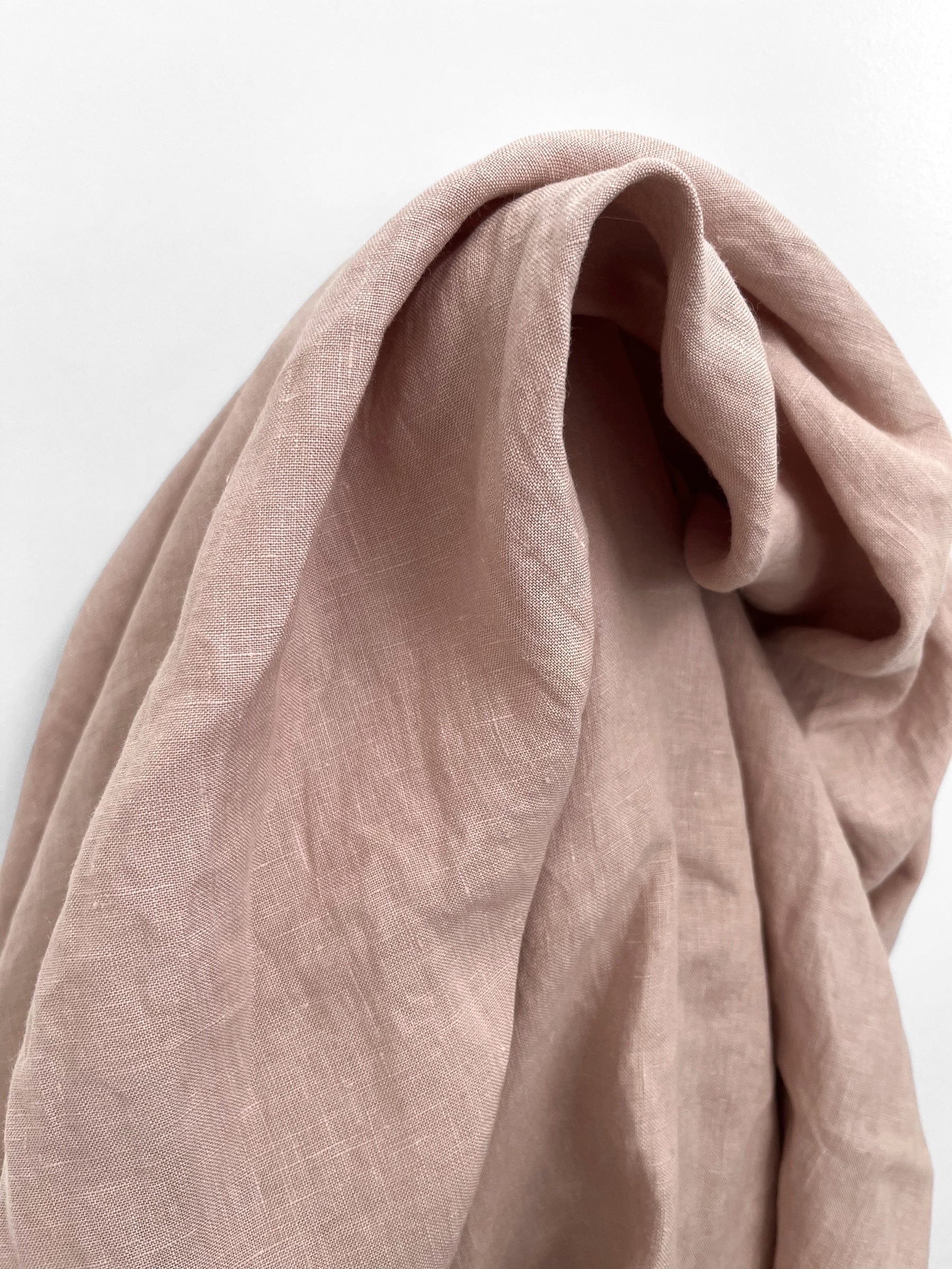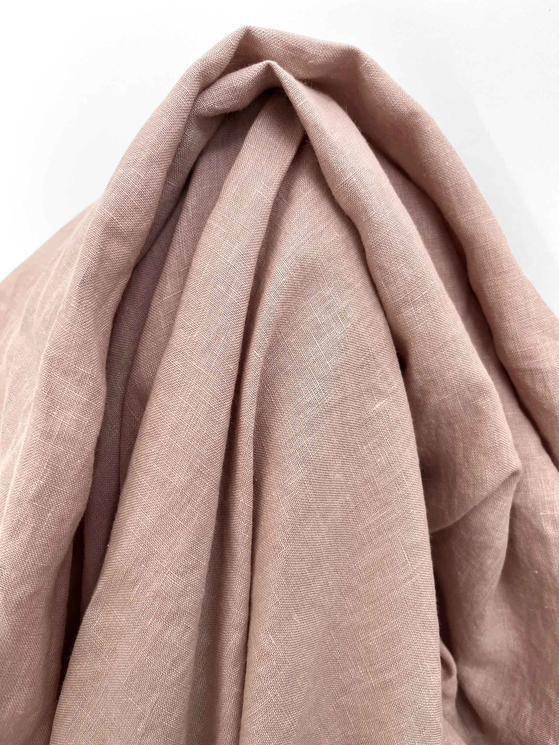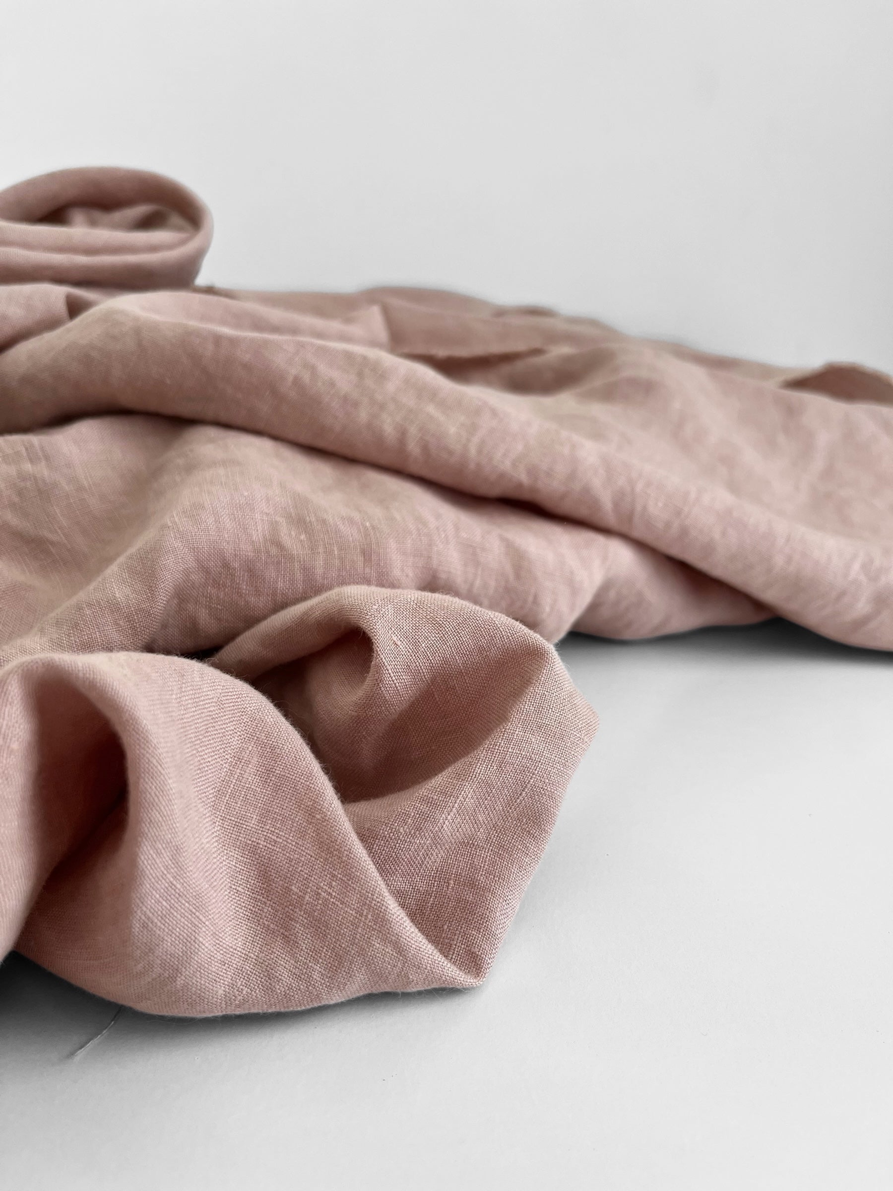 Pure European flax linen, stonewashed at the mill giving it softness and a relaxed texture for effortless elegance. Petal is a muted shade of warm light pink with a beige-y undertone.
