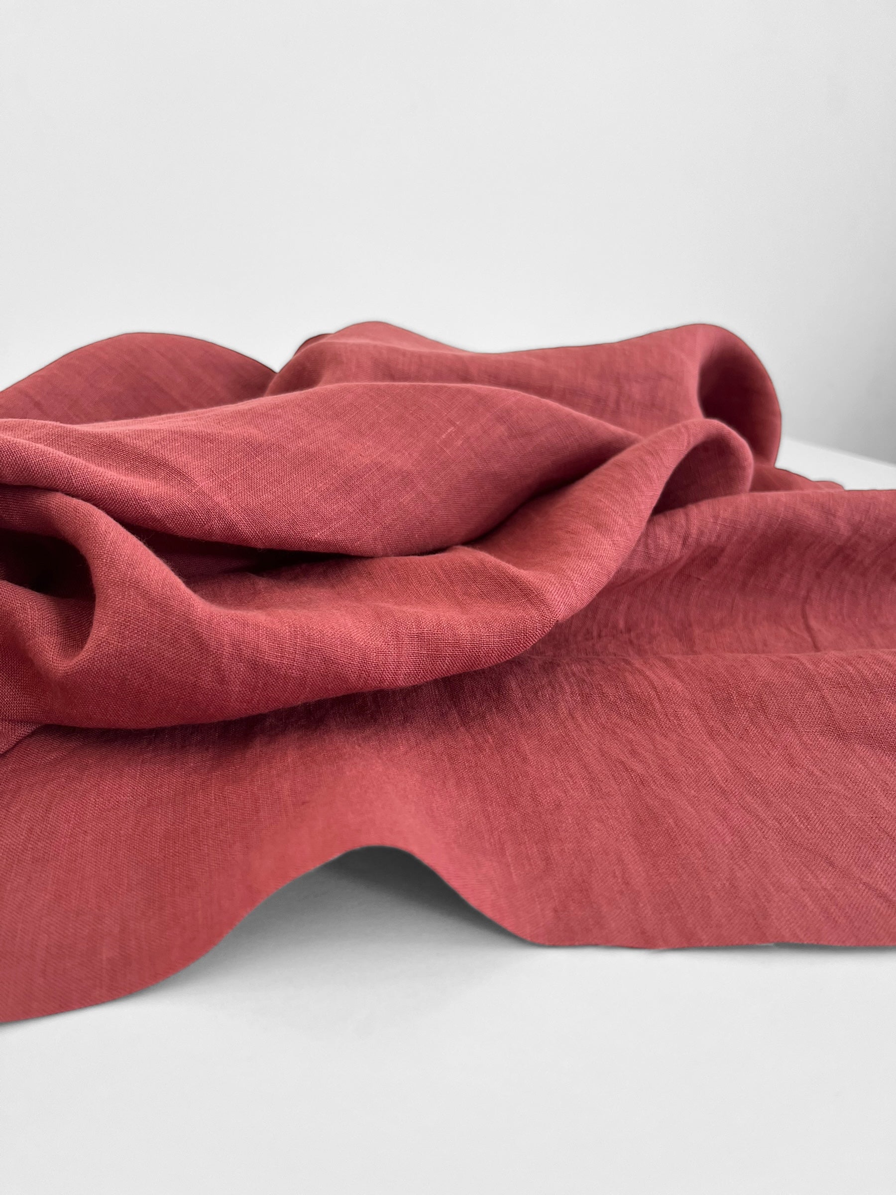 Pure European flax linen, stonewashed at the mill giving it softness and a relaxed texture for effortless elegance. Raspberry is a rich shade of reddish pink.