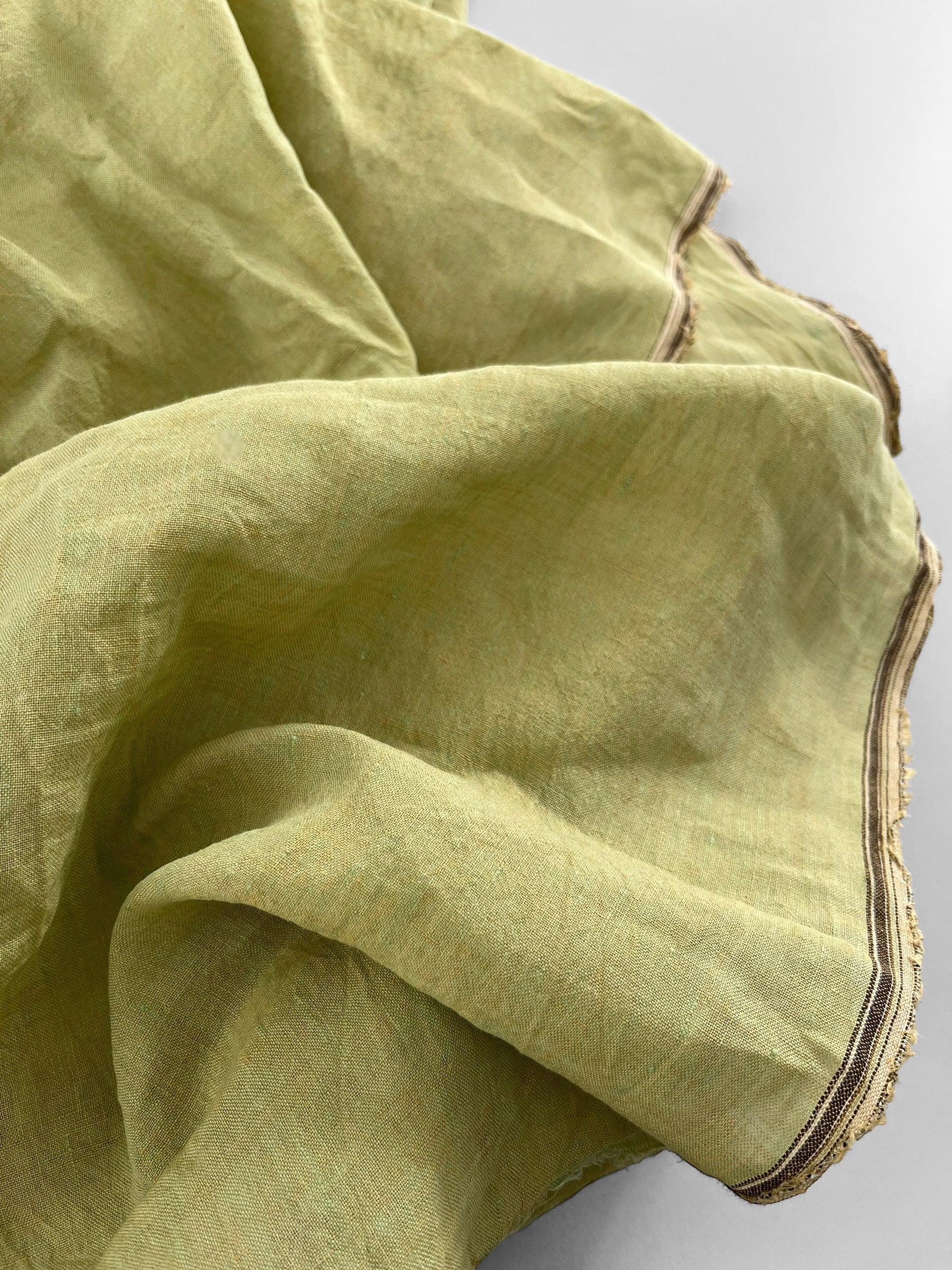 Premium quality linen/hemp blend woven out of two coloured yarn creating a unique melange look. Colours include a minty green and yellow.