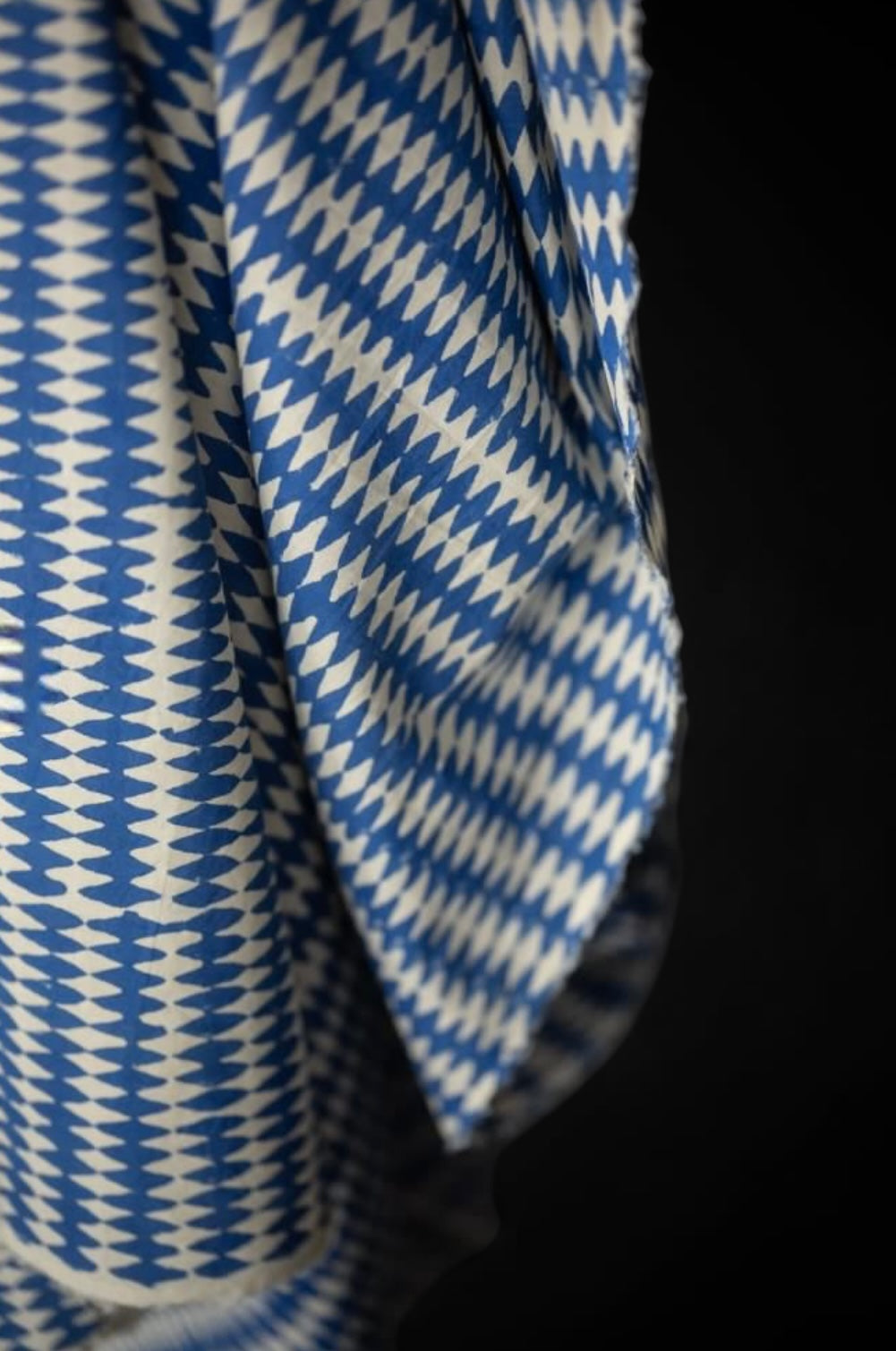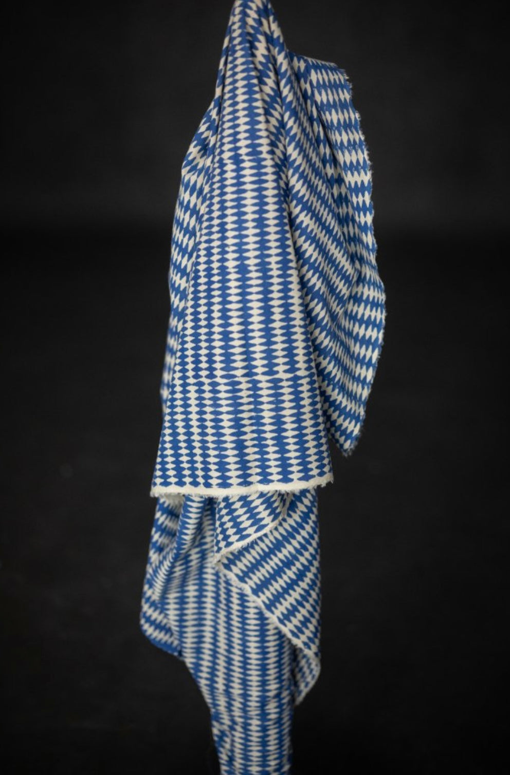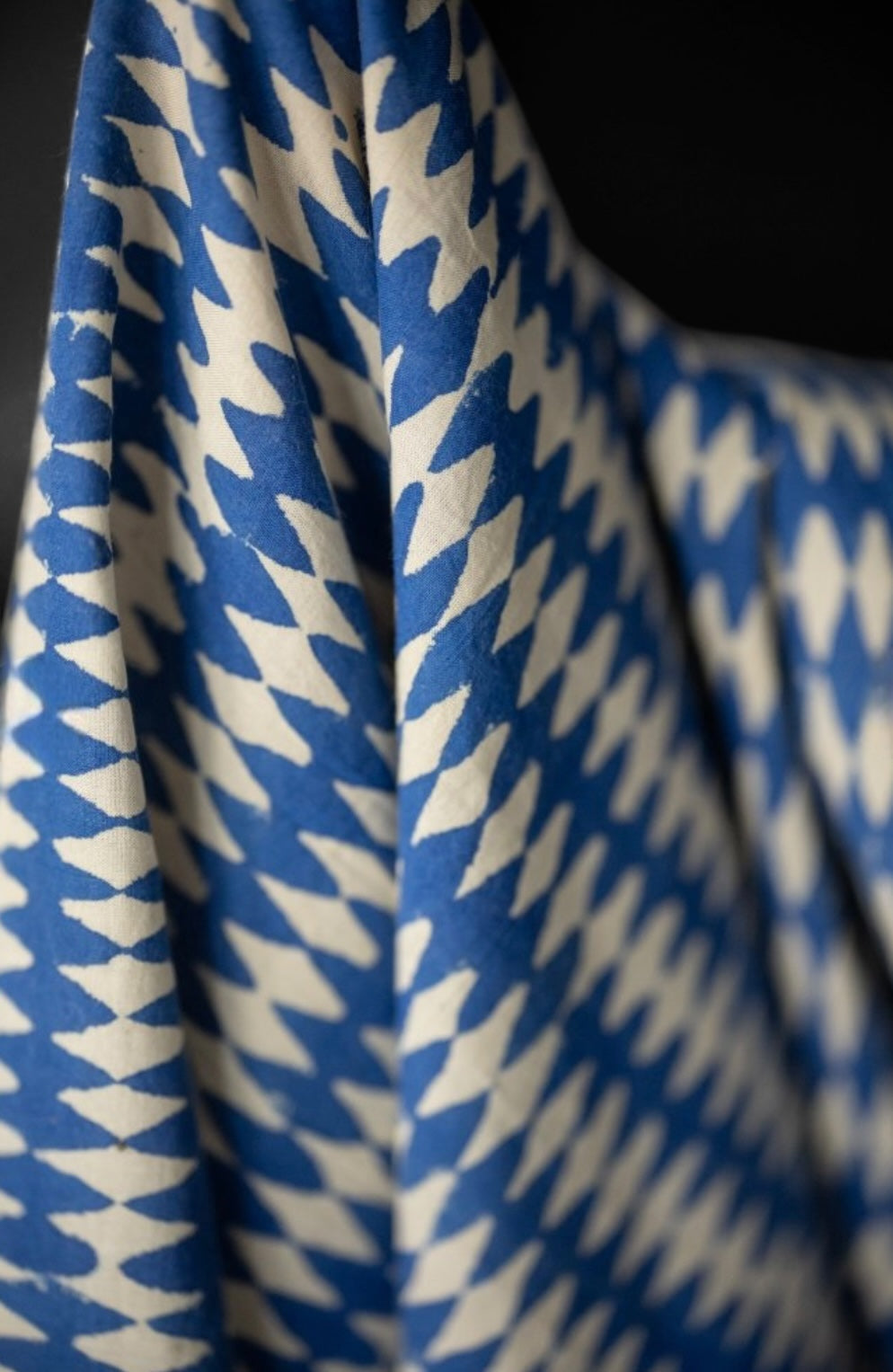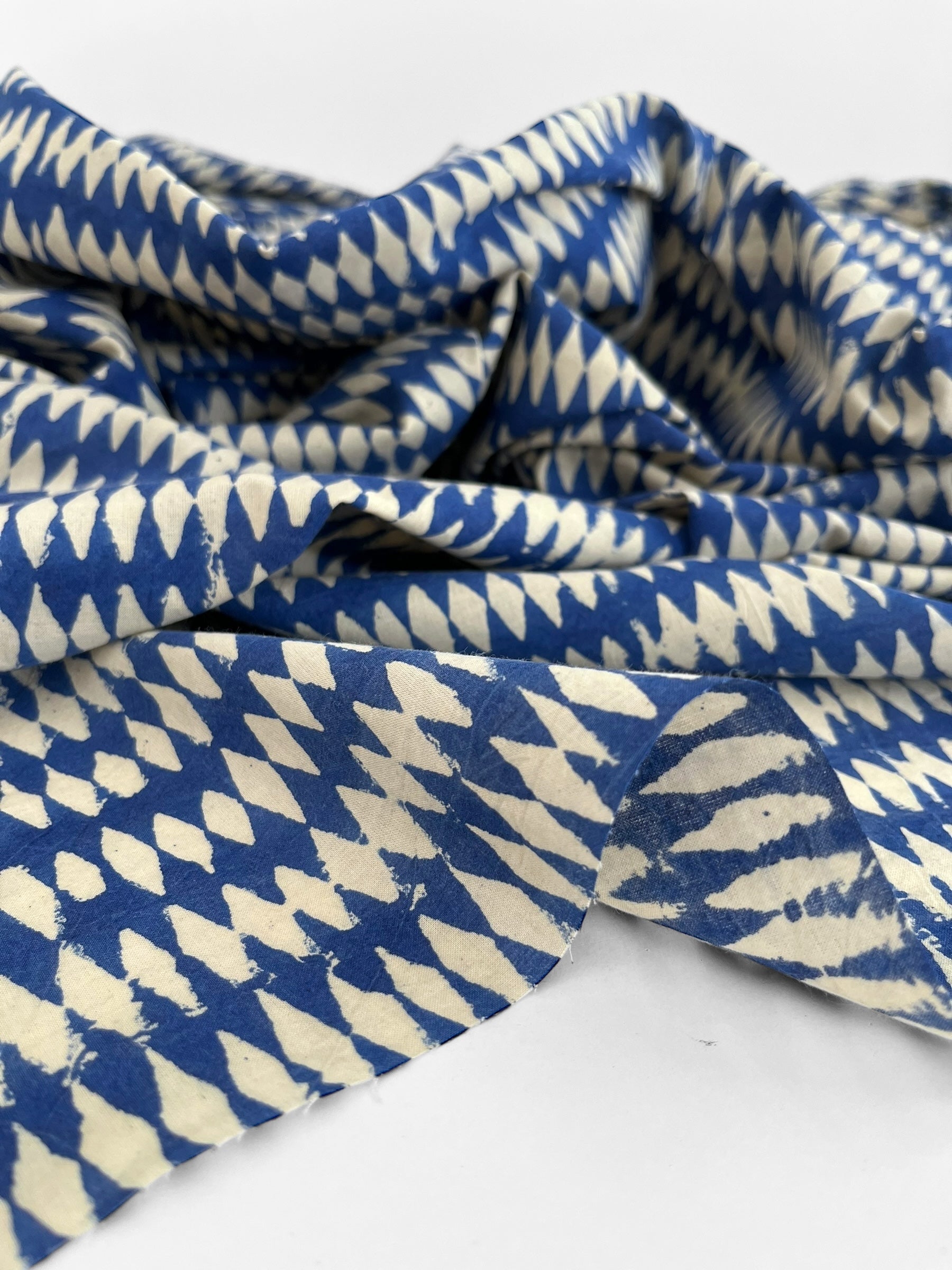 This cotton would be suitable for dresses with fullness and tops. You could also use this block print for home projects like small curtains or scatter cushions.