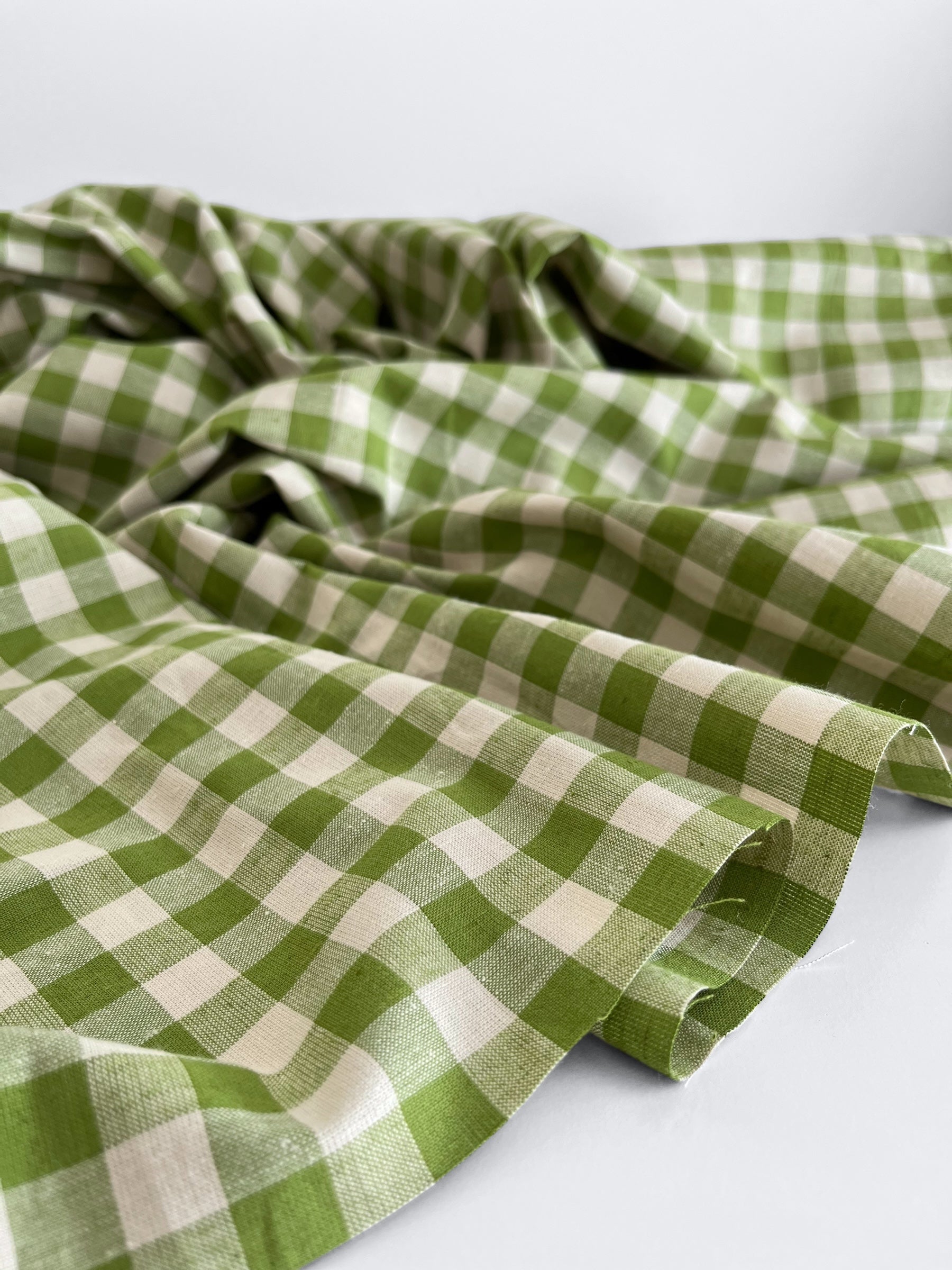 A vibrant gingham in light grassy green and natural by the iconic Merchant & Mills.
